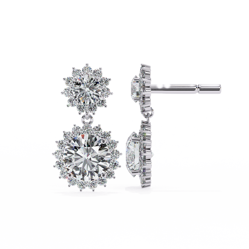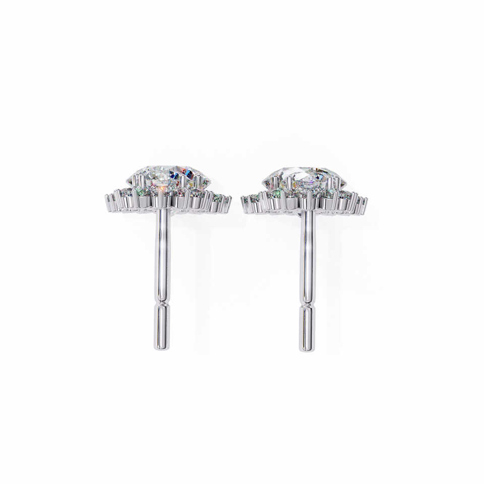 ต่างหูทองคำ 18K แบบคลาสสิกประดับเพชรเพาะเลี้ยงรูปทรงดอกไม้ ดีไซน์คลาสสิก