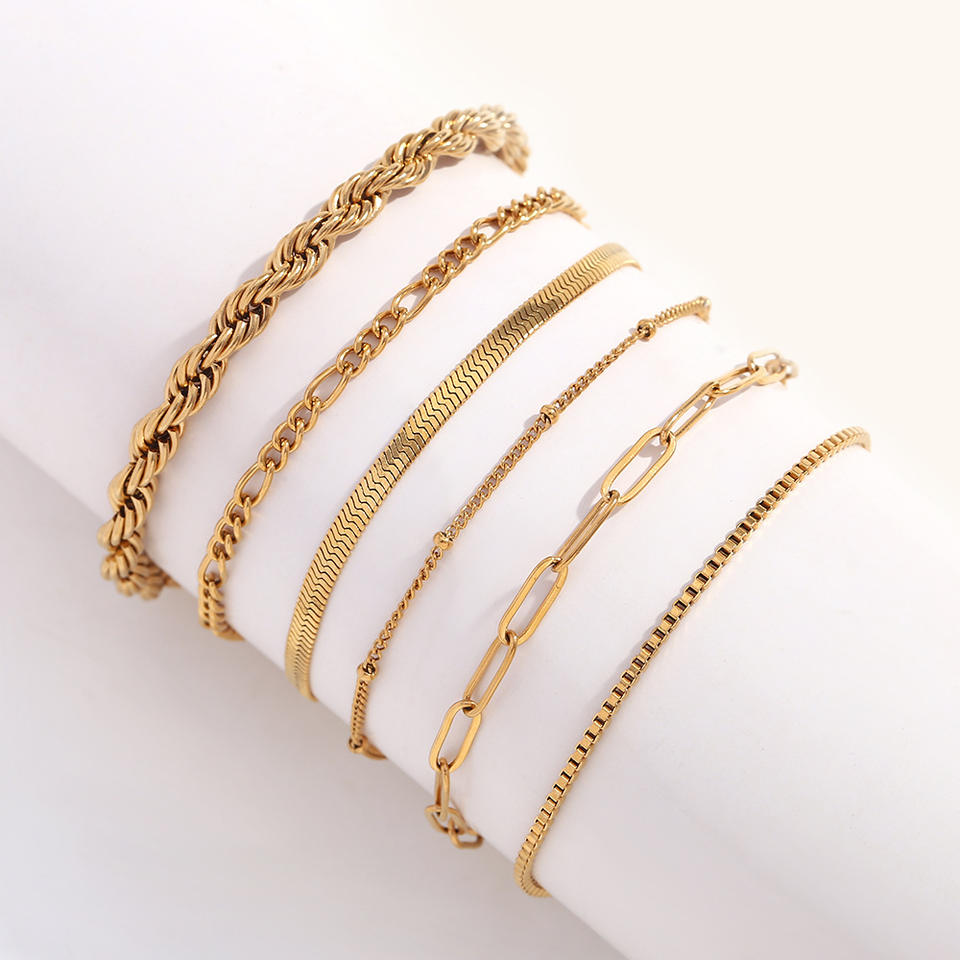 18K ทองคลาสสิก spacer ลูกปัด INS สไตล์ INS สร้อยข้อมือบิดห่วงโซ่แฟชั่นสแตนเลสโซ่ดีสร้อยข้อมือเชื่อมโยง