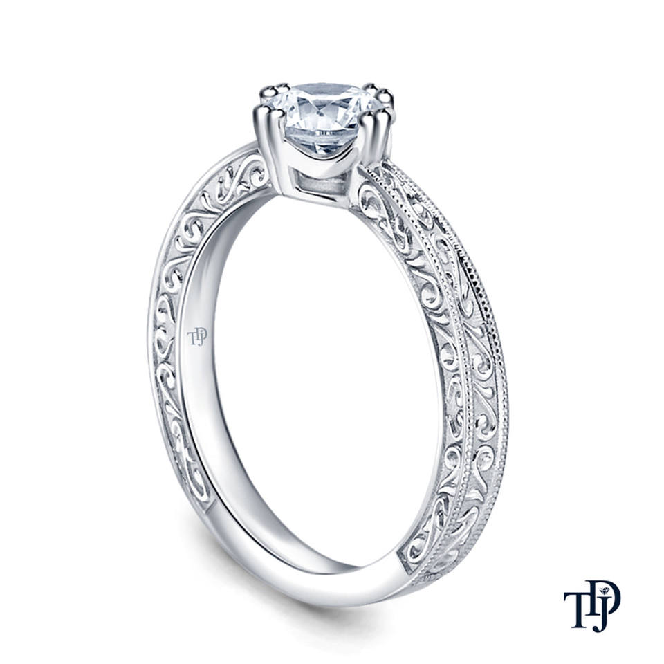 แหวนหมั้นทอง 18K ดีไซน์วินเทจหรูหรา แบบก้านคู่ทรงเรียว ลายสลัก ผลิตโดยผู้ผลิต OEM ขายส่ง
