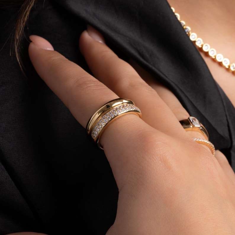 แหวนเพชรธรรมชาติทรงกลมสวยงาม18K ครึ่งวงพร้อมแหวนกว้างธรรมดาของขวัญสำหรับปาร์ตี้ที่สมบูรณ์แบบสำหรับคู่รัก