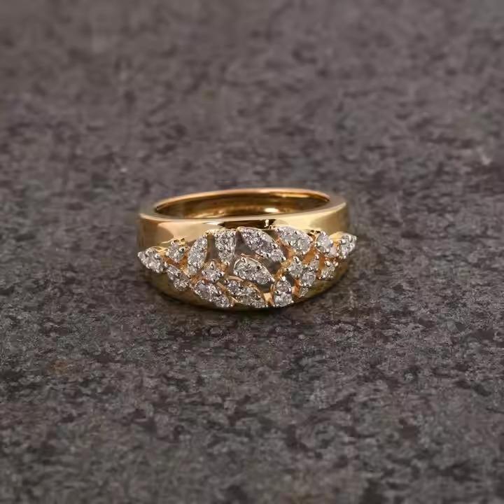 18K ทองแล็บเติบโต marquis คลัสเตอร์เพชรแหวนหมั้นแหวนแต่งงานโดมสีเหลืองทองของขวัญเครื่องประดับที่ดีสำหรับเธอ
