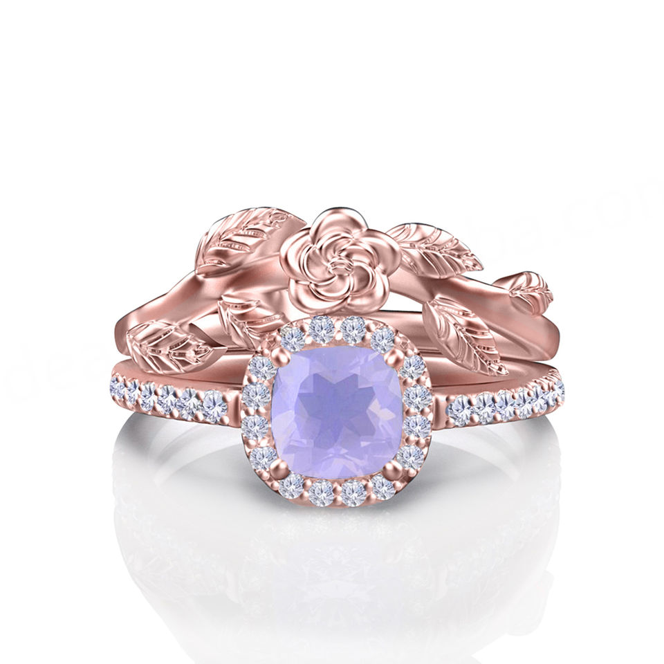 แหวนหมั้นควอตซ์ลาเวนเดอร์ทอง 18K ประดับเพชรสำหรับงานแต่งงานหรือวันครบรอบ รูปทรงกลม