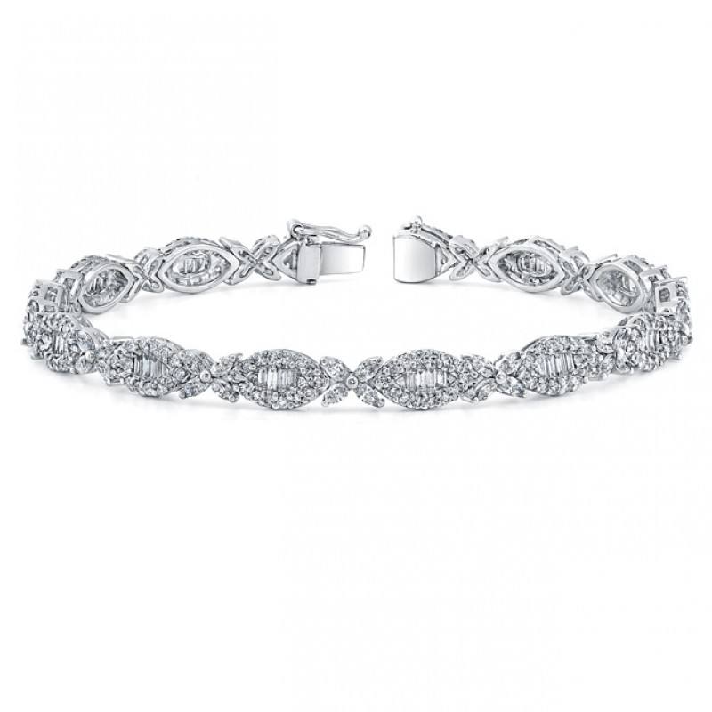 กำไลข้อมือเพชรทรงมาร์คีส์และทรงบาแกตต์ ดีไซน์ทองคำ 18K เพชรเลี้ยงในห้องปฏิบัติการ