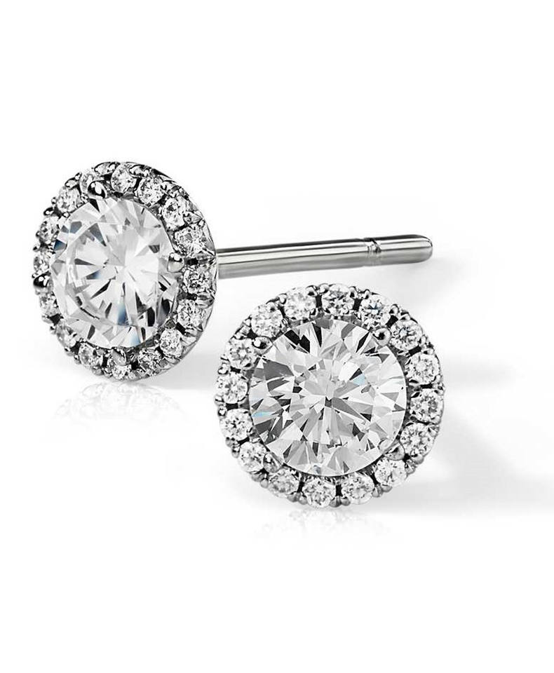 ต่างหูเพชรทรงกลมแบบฝังเพชรรอบวง 18K ทองคำแท้ ประดับเพชรแล็บโกรว์