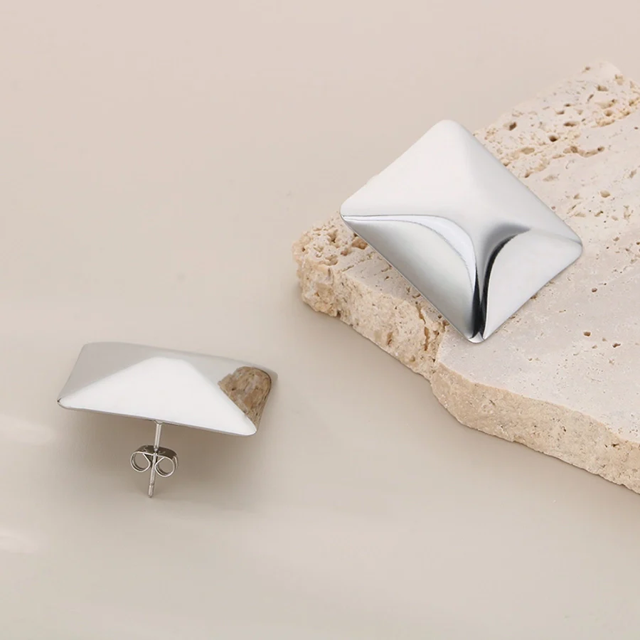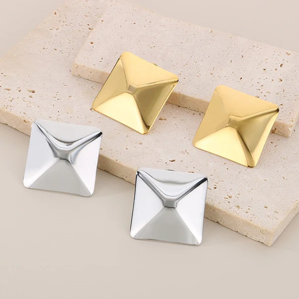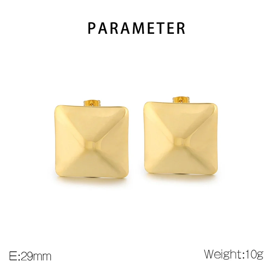 304ชุบทอง18K ต่างหูสแตนเลสสไตล์วินเทจโมเดิร์นคลาสสิก-สี่เหลี่ยมกรอบสีทึบการตั้งค่าเทคโนโลยี