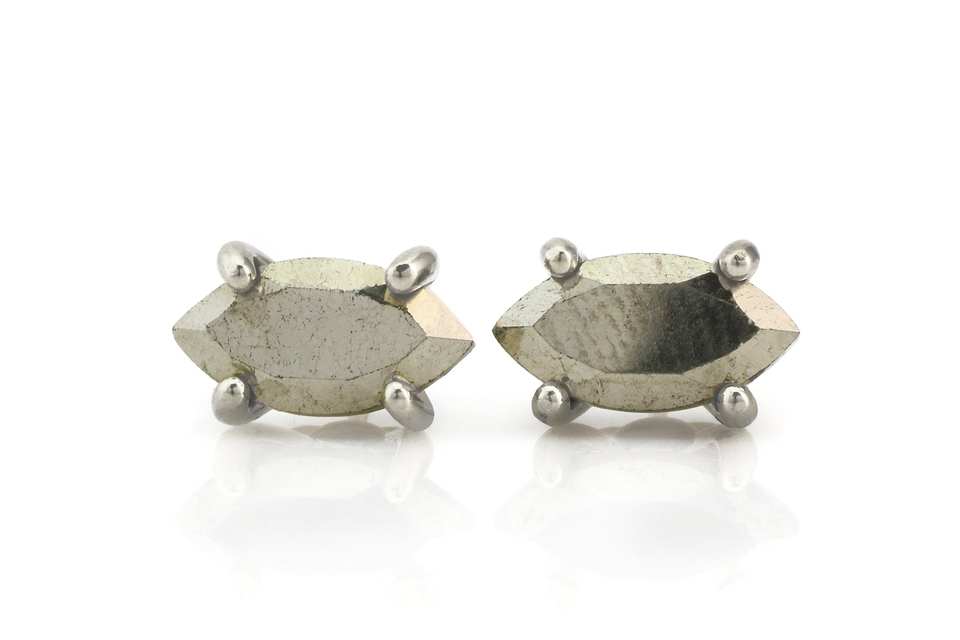 ชุบทอง18K 925เงินสเตอร์ลิงวัสดุรูปตาธรรมชาติสีเทาหินไพไรต์เจียระไนอัญมณีสตั๊ดอัญมณีประณีตเครื่องประดับ