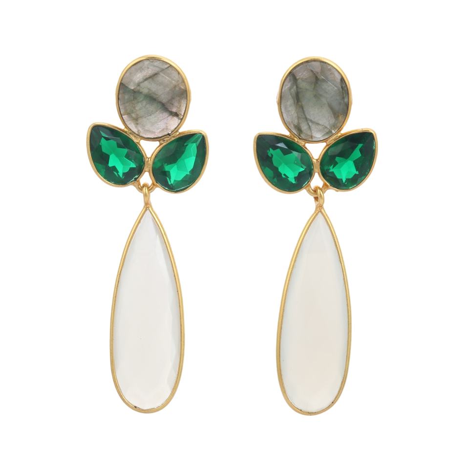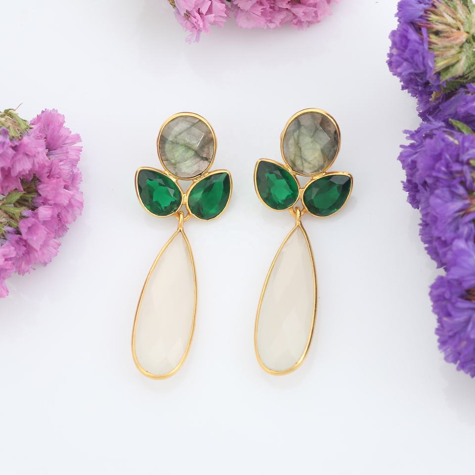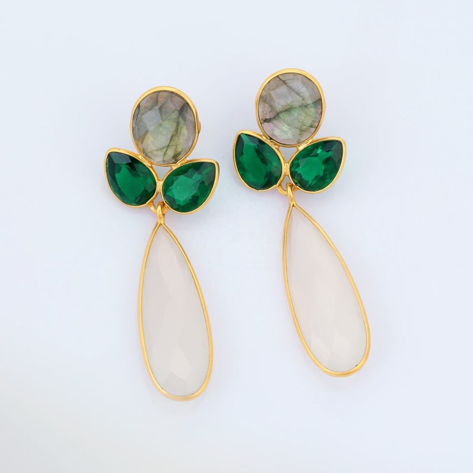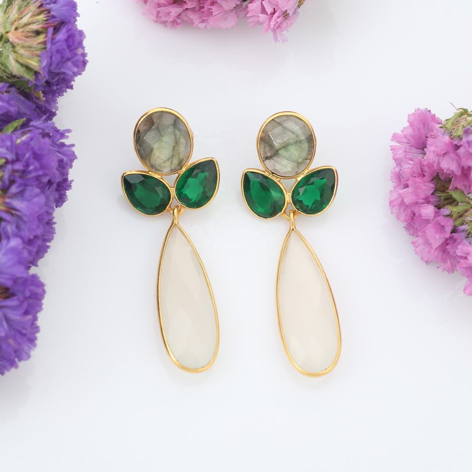 ชุบทอง18K 925เงินสเตอร์ลิงต่างหูธรรมชาติ labradadorite และสีเขียวร้อนแรงสไตล์แฟชั่นสีขาวน้ำนมเรียบง่าย