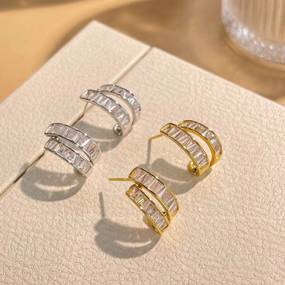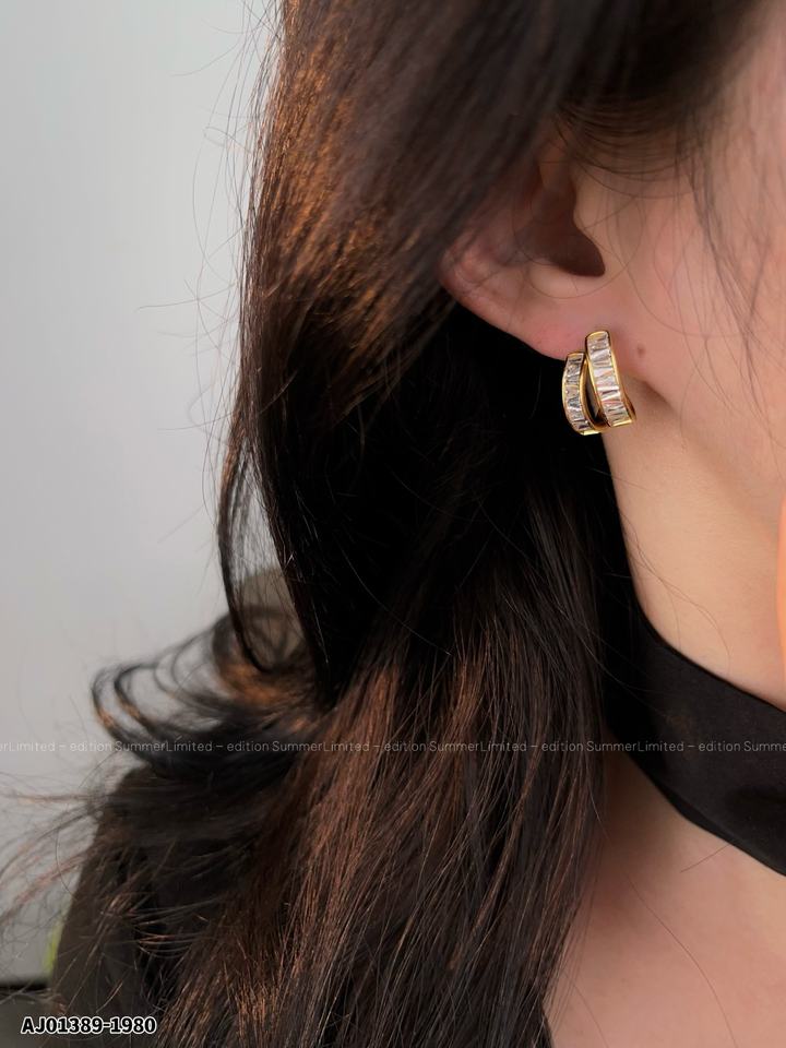 ต่างหูแบบห่วงเจาะเพทายสีทอง18K ต่างหูสตั๊ดสไตล์วินเทจสำหรับปาร์ตี้ของขวัญเครื่องประดับแฟชั่น