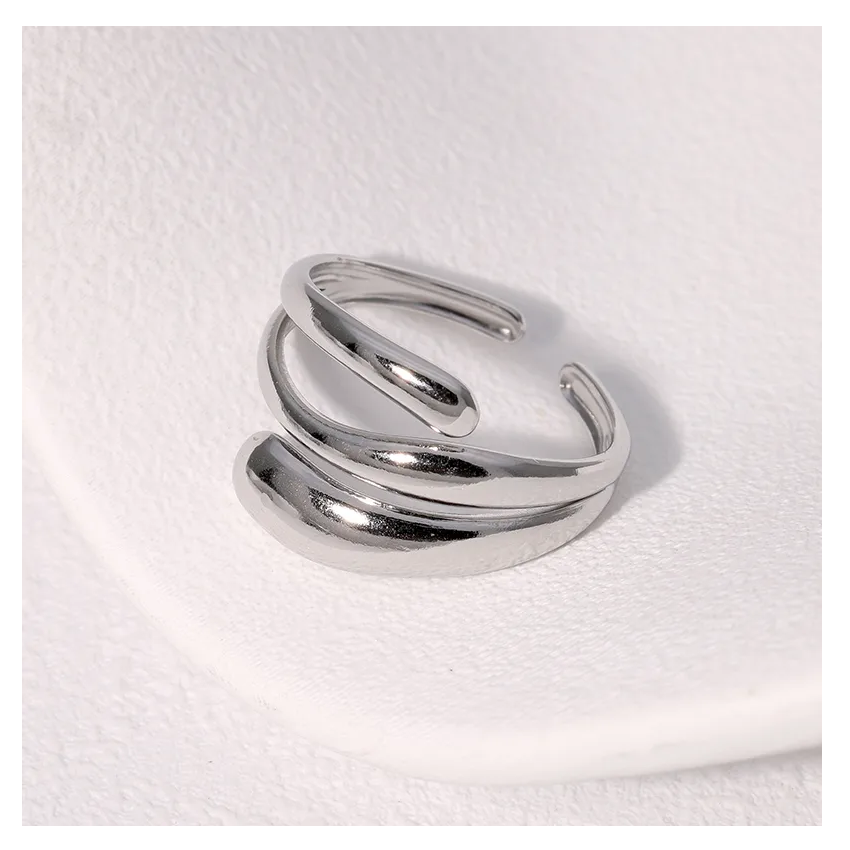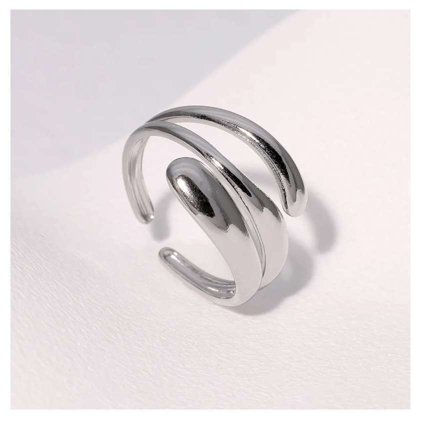 แหวนทอง18K ปรับได้ทำจากสเตนเลสสตีลแหวนแบบเปิดที่มีลักษณะไม่สม่ำเสมอของผู้หญิงวัสดุ304สไตล์หวาน