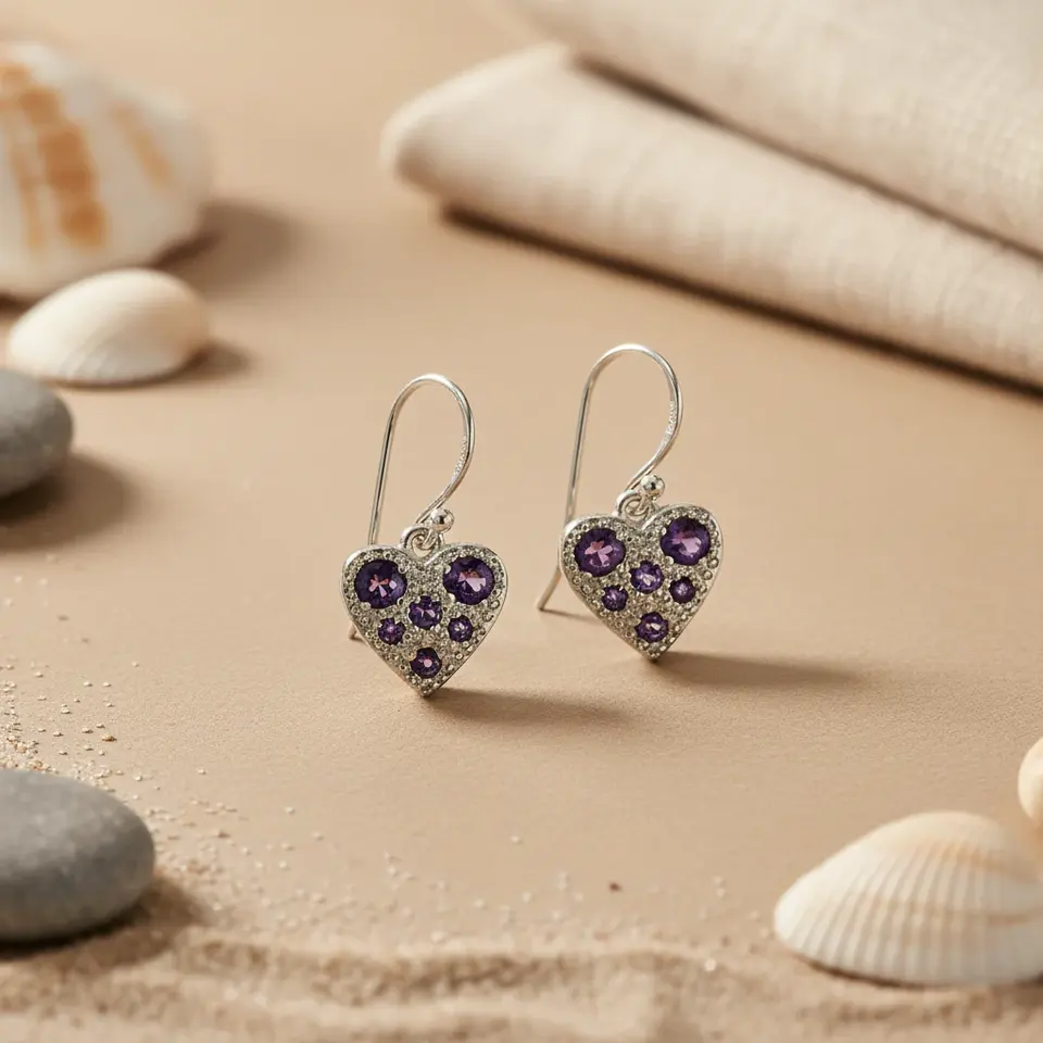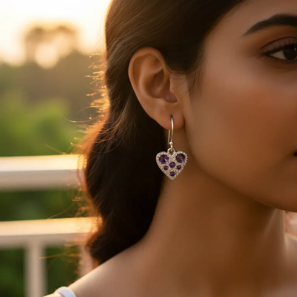 ต่างหูห้อยรูปหัวใจประดับอเมทิสต์ชุบทอง 18K สำหรับงานแต่งงานและของขวัญงานเลี้ยงสำหรับผู้หญิง