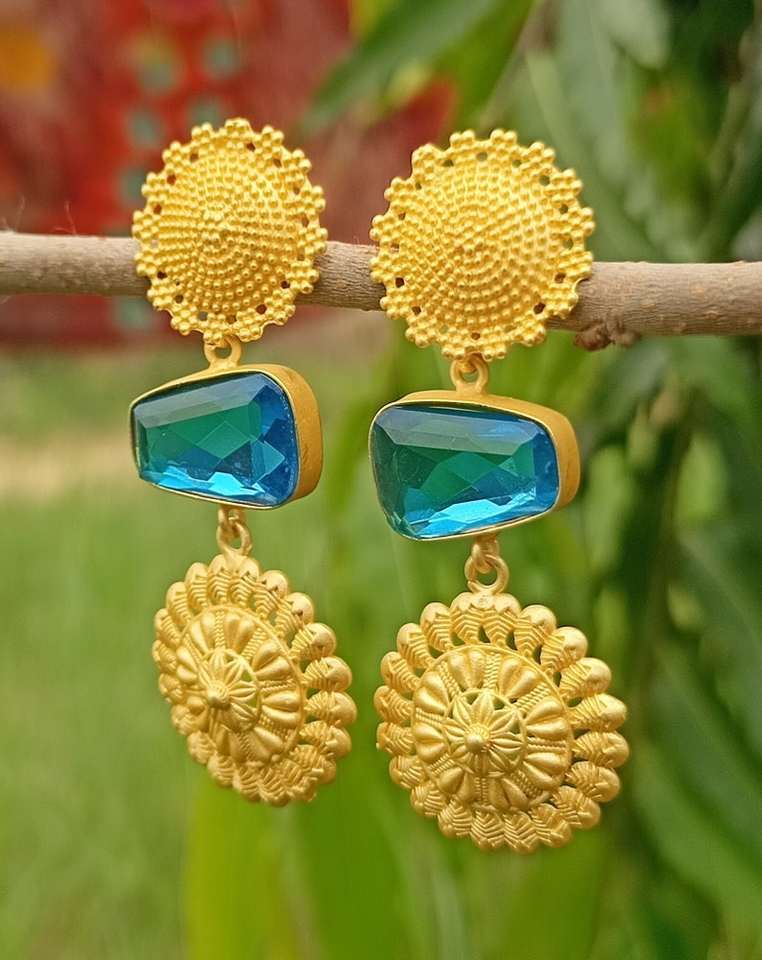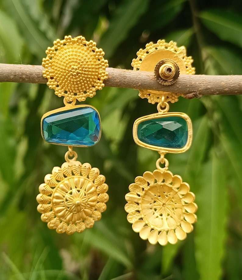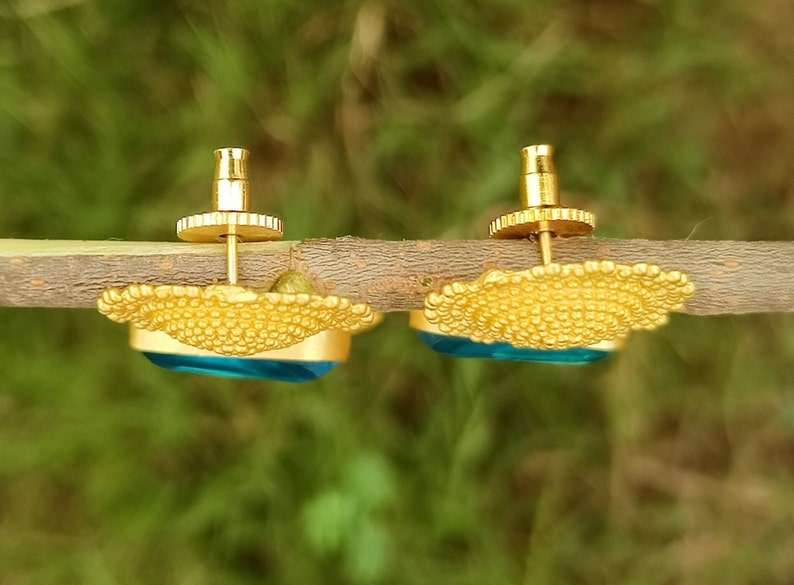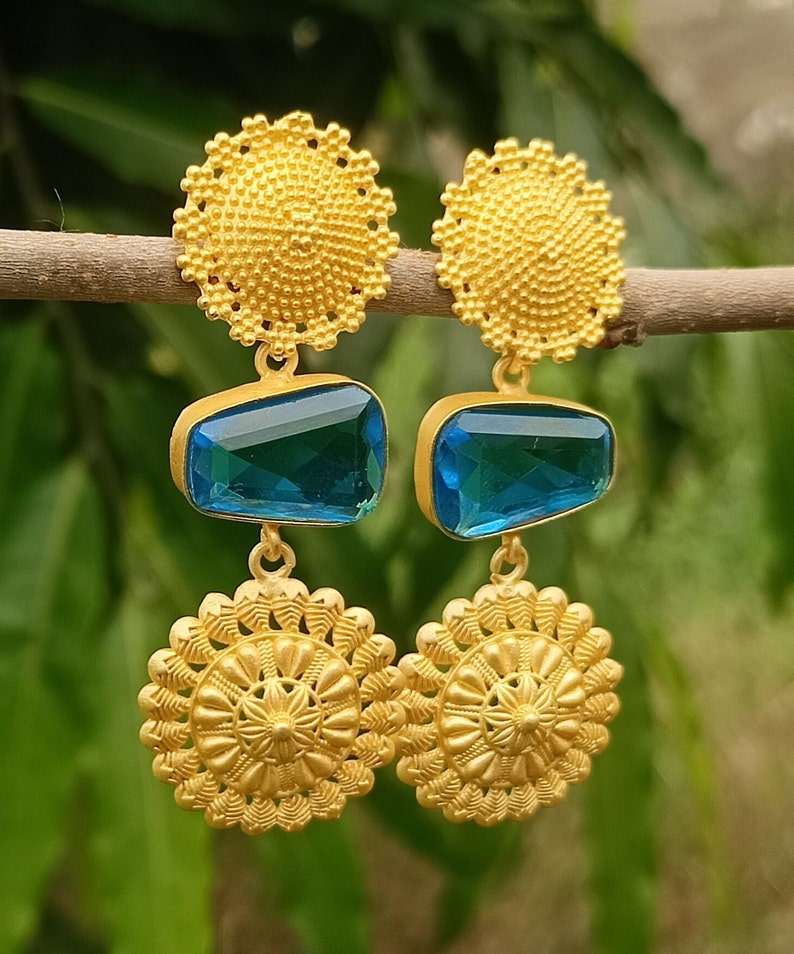 18K Gold Plated Blue Topaz Earring Handcrafted Classic Style Jewelry Stylish Trending Cut Stone Earring