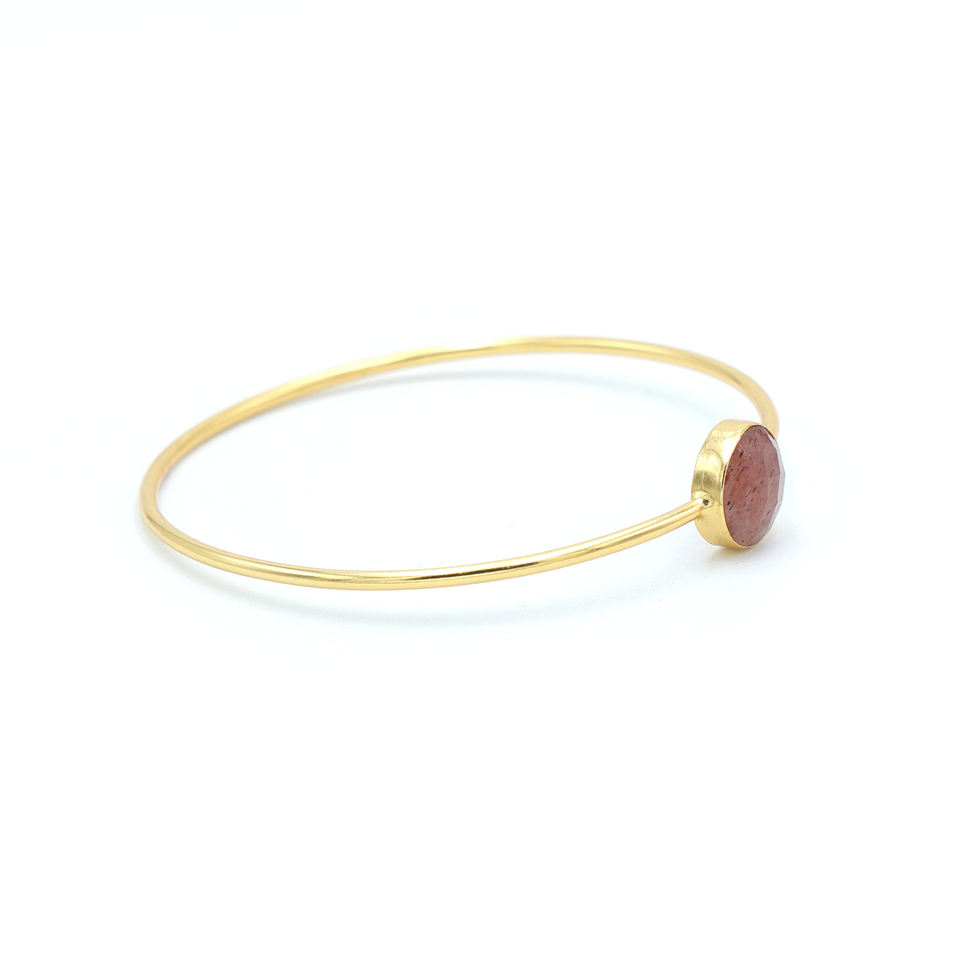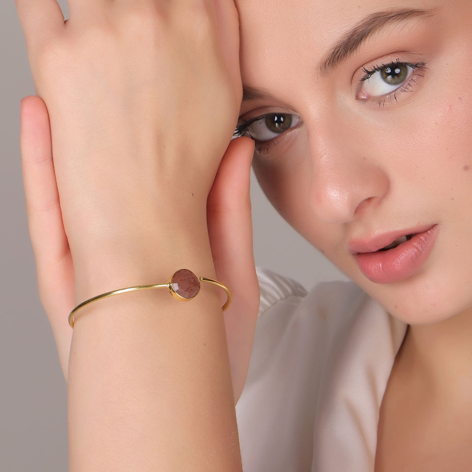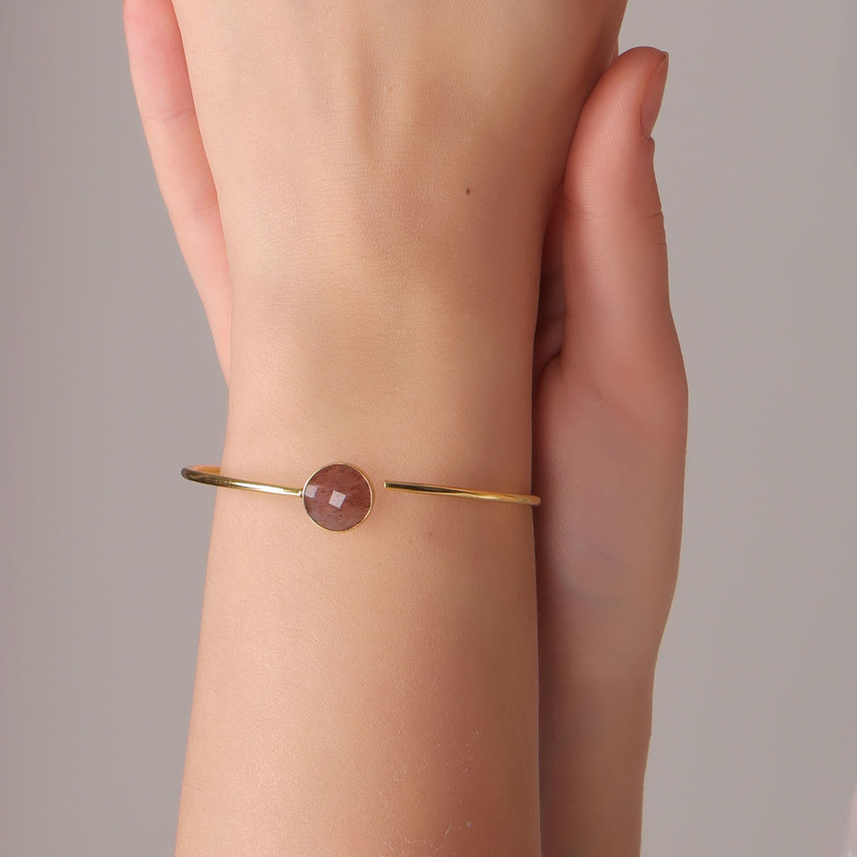 กำไลข้อมือทองเหลืองชุบทอง18K คริสตัลสีน้ำตาลสตรอเบอรี่สุดอินเทรนด์เครื่องประดับสำหรับงานแต่งงาน