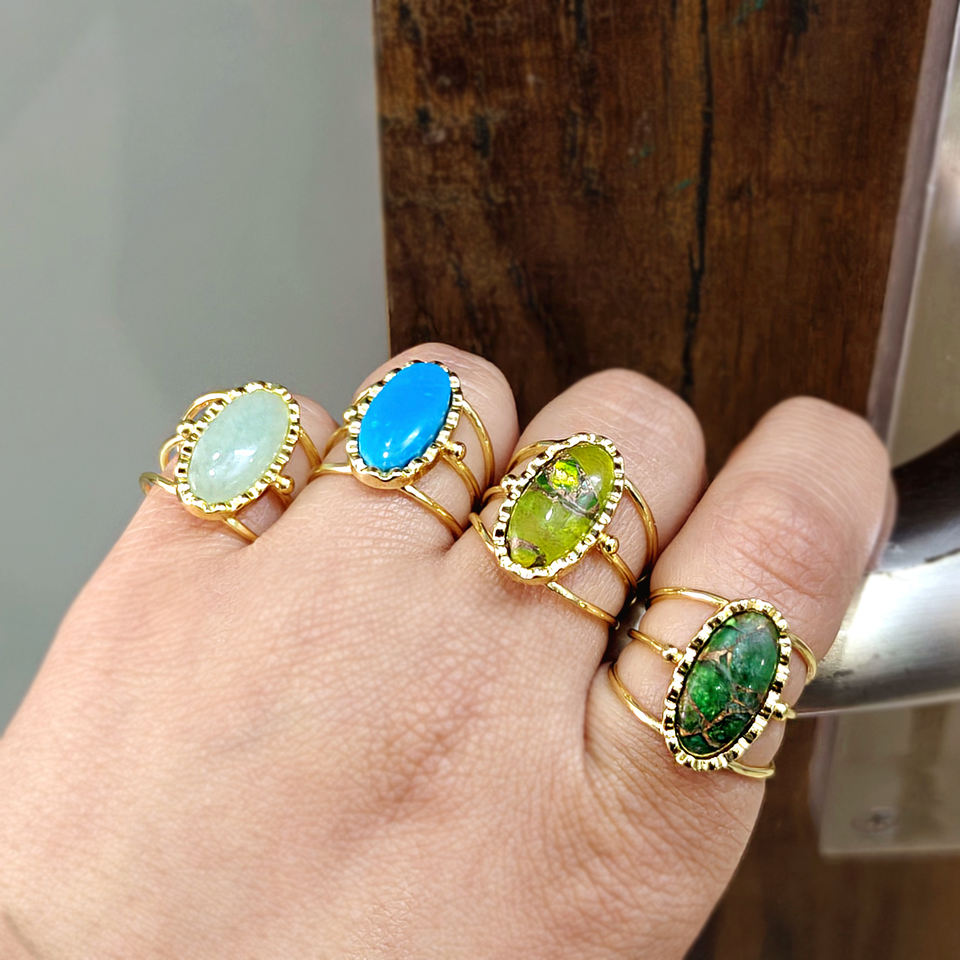 แหวนทอง 18K ชุบทองเหลือง ประดับพลอยเพอริดอททรงรี เรียบหรู ดีไซน์วงเปิดหลายวง สำหรับงานเลี้ยงค็อกเทล เครื่องประดับผู้หญิง ดีไซน์เก๋ไก๋ ฝังแบบ Bezel
