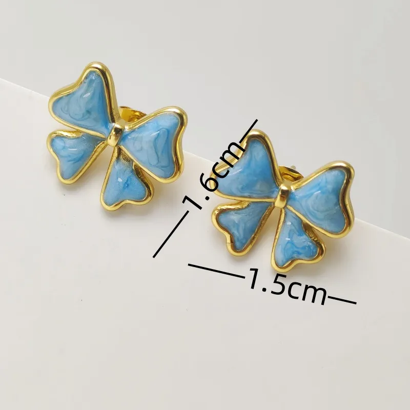 ต่างหูรูปโบว์ชุบทอง18K 304เป็นคู่ทำจากสเตนเลสสตีล