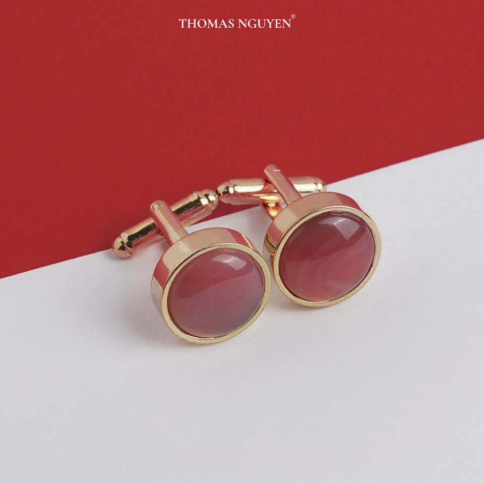 หินอาเกตสีแดงเคลือบทอง 18K สำหรับเสริมฮวงจุ้ย | กระดุมข้อมือสุดอินเทรนด์สำหรับผู้ชาย MSDADO009 | คอลเลกชันตินห์วู | ผลิตในเวียดนาม