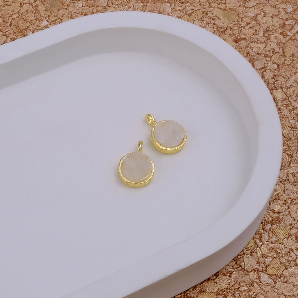 ชุบทอง18K ทำมือสีรุ้งมูนสโตนจี้พื้นผิวเป็นขอบหินอัญมณีธรรมชาติจี้แฟชั่น