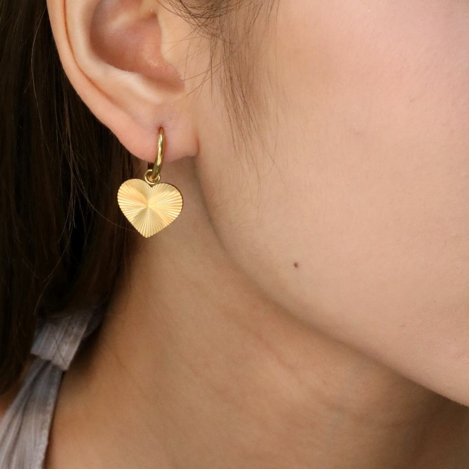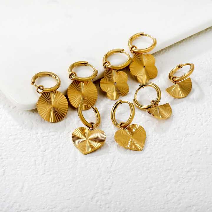 ต่างหูห่วงชุบทอง 18K สำหรับผู้หญิง ชุดต่างหูรูปหัวใจ ดอกไม้ พัด ลายเรียบง่าย ต่างหูห้อยทรงเรขาคณิต