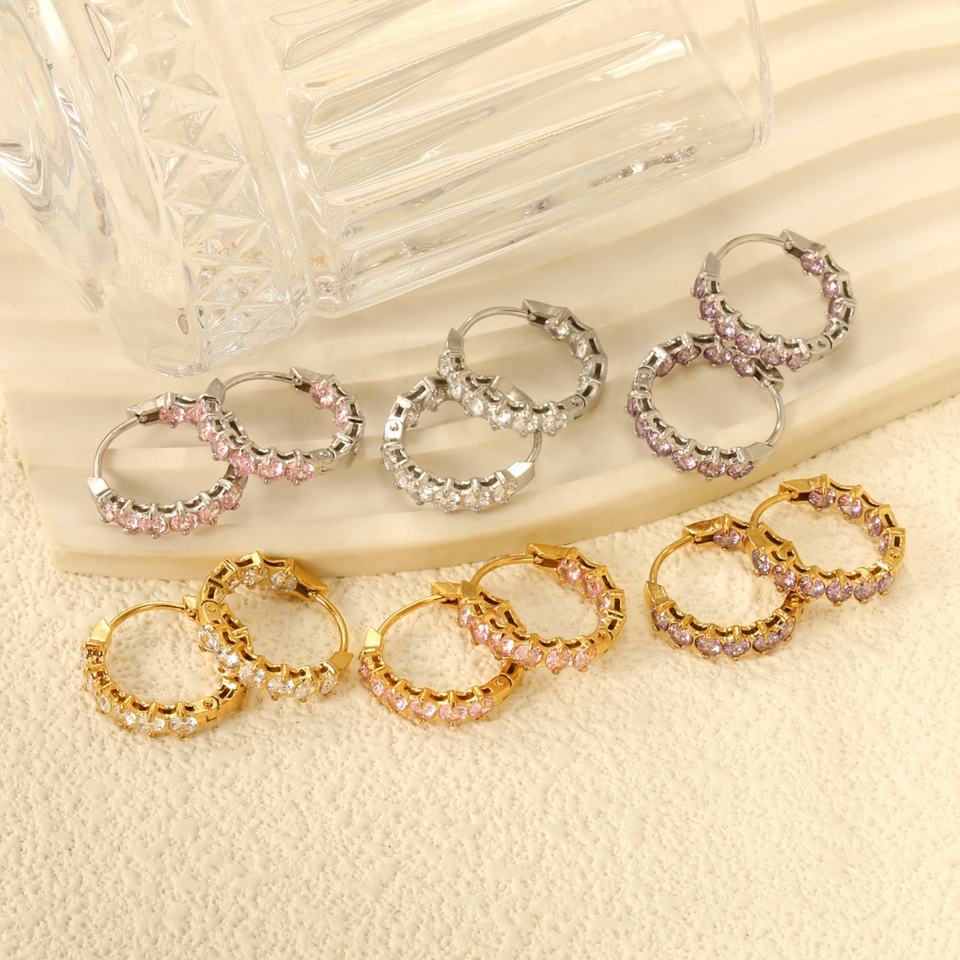 ต่างหูสแตนเลสสตีลชุบทอง 18K ป้องกันการแพ้ ประดับด้วยเพชรคิวบิกเซอร์โคเนียหลากสี รูปทรงเรขาคณิต สำหรับผู้หญิง
