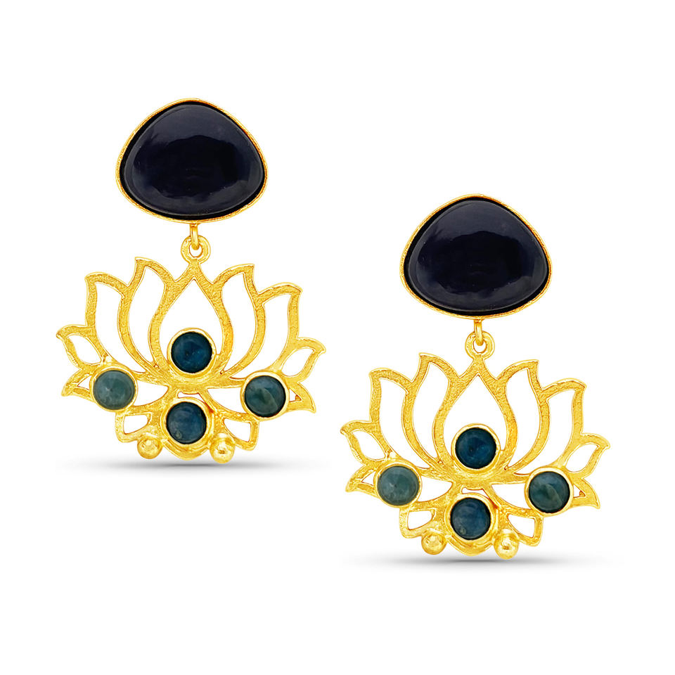 ต่างหูพลอยหลายเม็ดชุบทอง18K เครื่องประดับแฟชั่นโอนิกซ์สีดำคลาสสิกสำหรับงานแต่งงานวันครบรอบปาร์ตี้ทำจากทองเหลืองสำหรับ