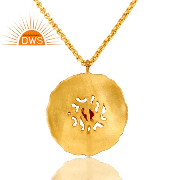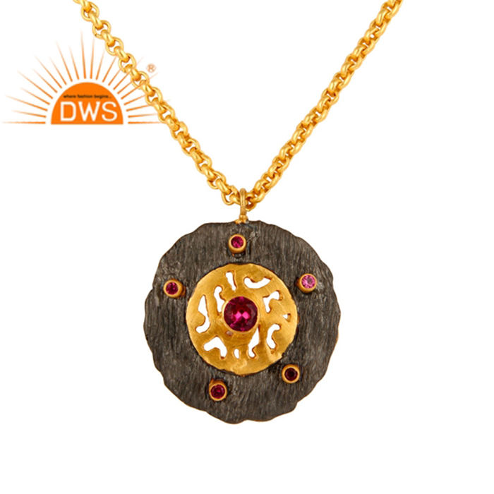 จี้ทอง 18K ชุบทองประดับเพทายสีแดง ดีไซน์ขัดเงา พร้อมสร้อยคอ คอลเลคชั่นคลาสสิก