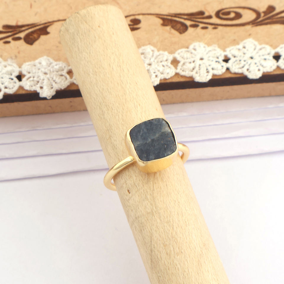 แหวนพลอยแซฟไฟร์ชุบทอง18K แหวนเพชรที่เรียบง่ายเปิดได้แบบไม่เจียระไน