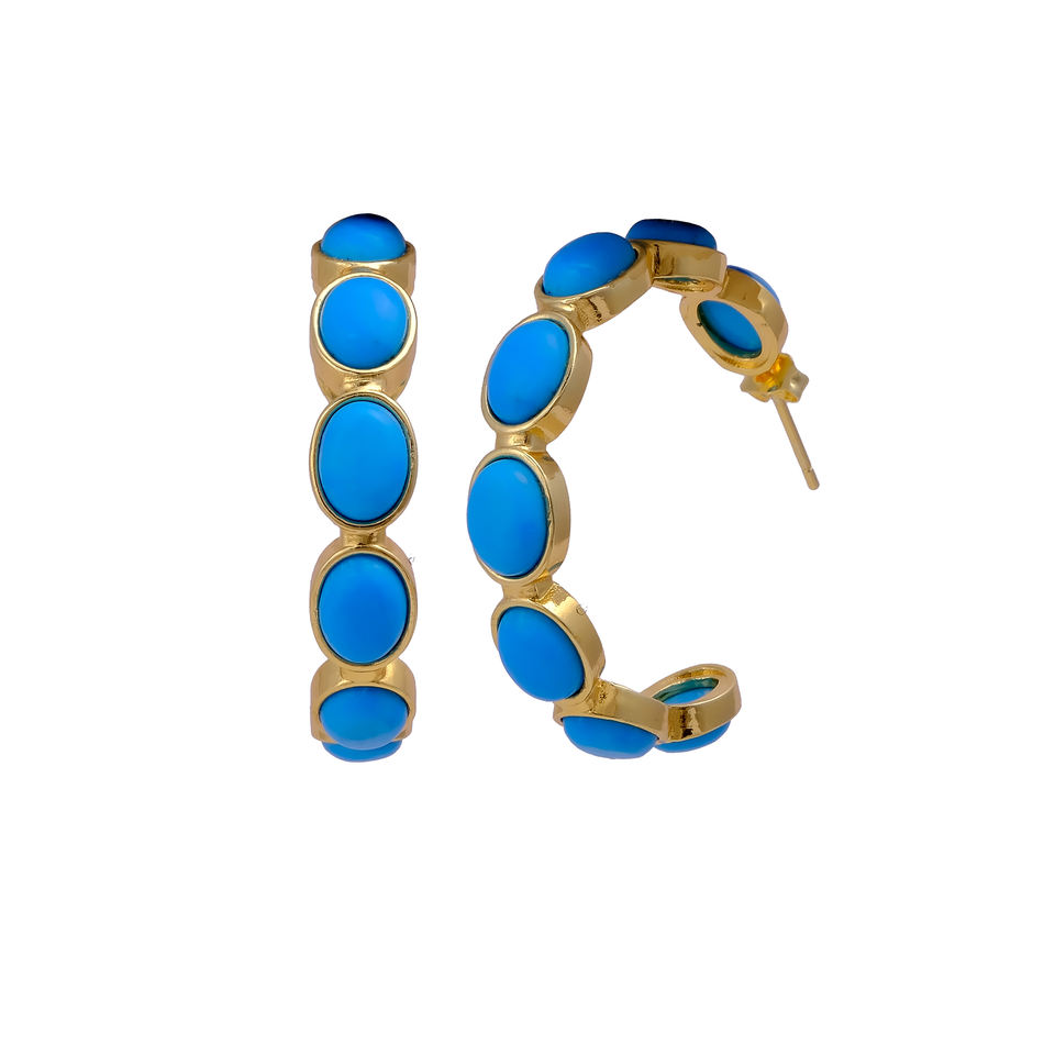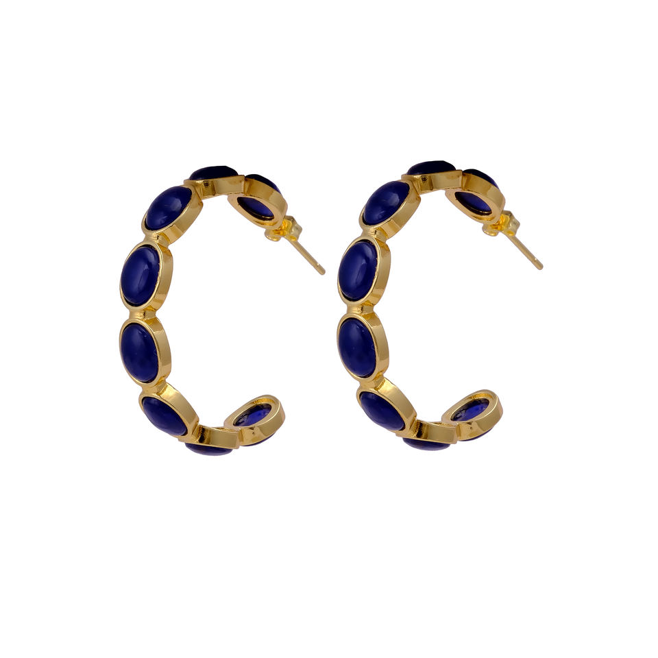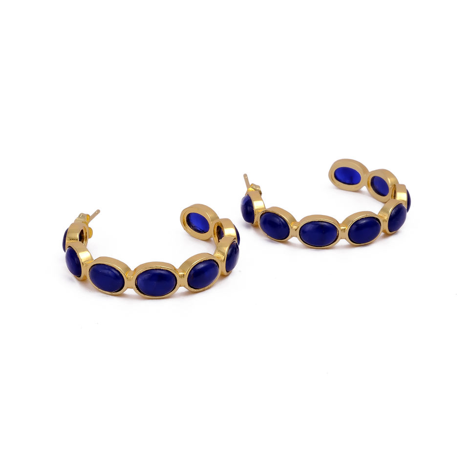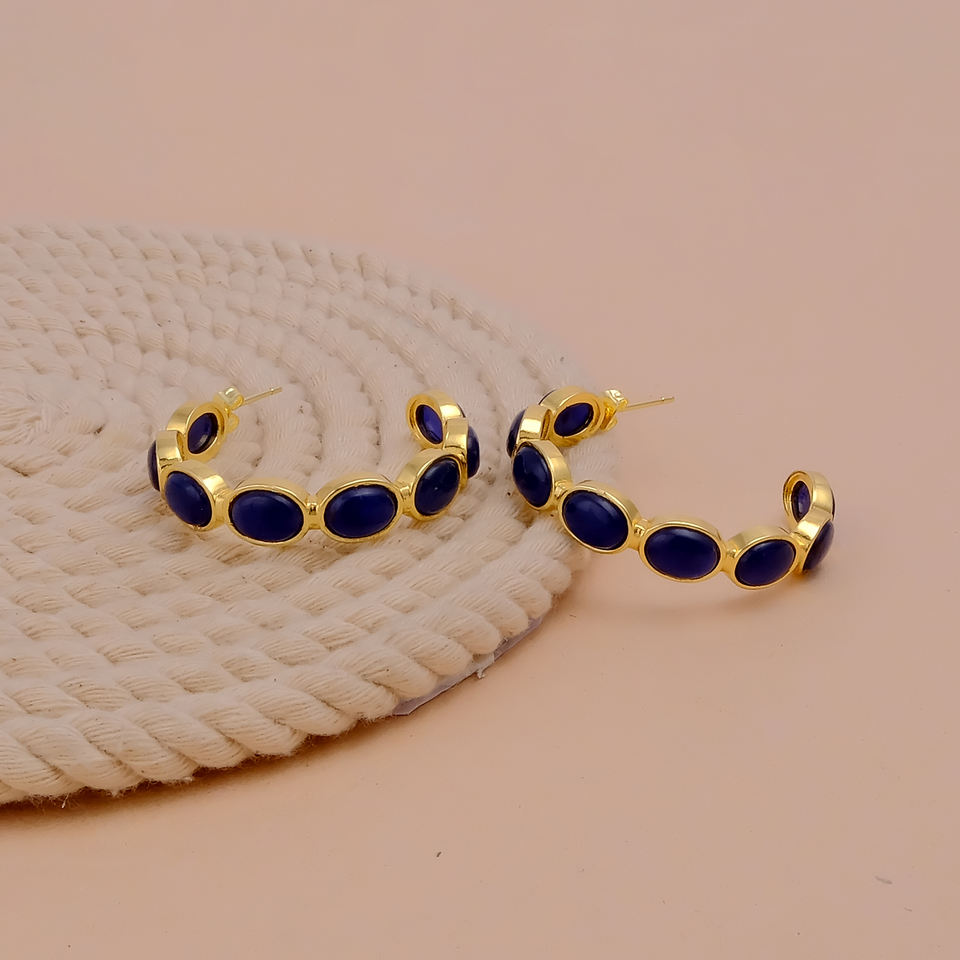 ต่างหูห่วงโซดาไลต์ชุบทอง 18K ป้องกันการหมอง ทำด้วยมือ ประดับพลอยรูปไข่ เครื่องประดับโดดเด่นสำหรับผู้หญิง ต่างหูสไตล์ทันสมัย