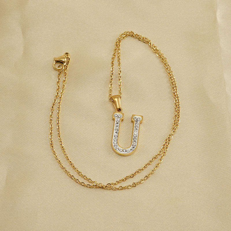 18K Gold Plated Stainless Steel Letter Pendant Necklace with Stainless Steel Main Stone Women's Fashion Jewelry Gift New Dream