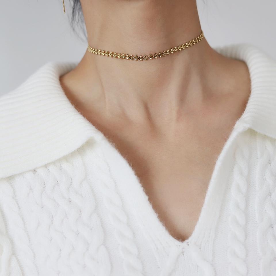 สร้อยคอชุบทอง18K สำหรับผู้หญิงดีไซน์ข้าวสาลีเรขาคณิตสร้อยคอสแตนเลสโซ่ทันสมัยสำหรับของขวัญแฟชั่น