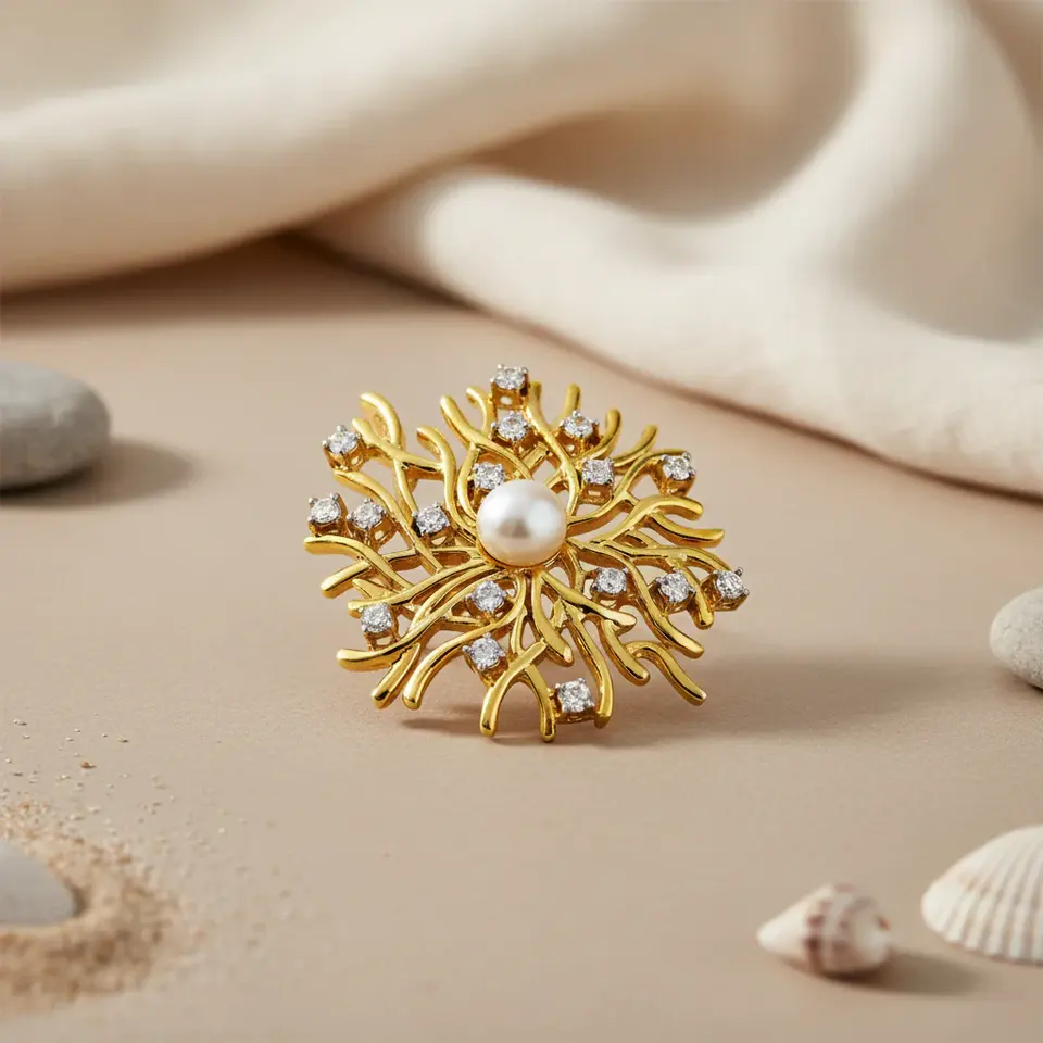 เข็มกลัดทอง 18K ชุบ ประดับมุกและเพชร สำหรับผู้หญิง เหมาะสำหรับงานหมั้น งานแต่งงาน หรือเป็นของขวัญในงานปาร์ตี้