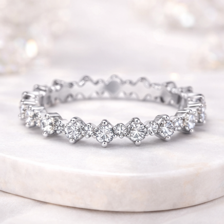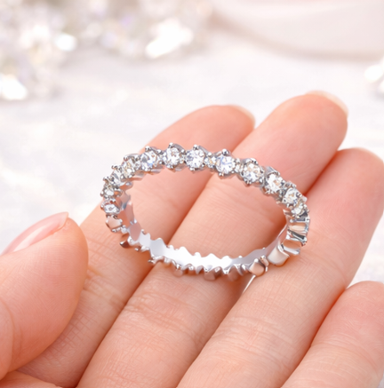 แหวนแต่งงานหรูหราชุบทองคำขาว 18K ประดับเพชร VVS2 สี D ทรงบริลเลียนท์คัท ผลิตในห้องปฏิบัติการ