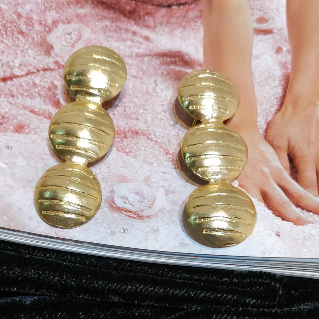 ต่างหูเม็ดกลมโรเดียมชุบทอง18K ต่างหูแผ่นทองเหลืองที่สร้างสรรค์สำหรับงานแต่งงานงานหมั้นครบรอบปีแบบคลาสสิก