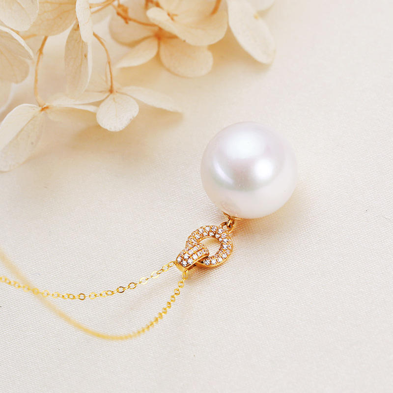 สร้อยคอจี้ห่วงทอง 18K ประดับมุกน้ำจืด Edison ขนาด 14 มม. แสงสว่างสวยงาม สร้อยคอแฟชั่น