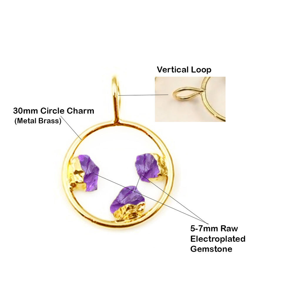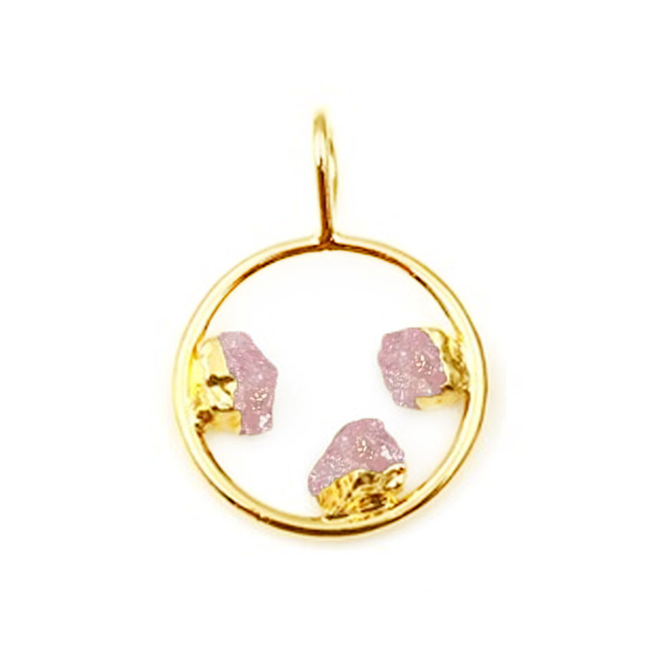 ทอง18K และเงินชุบรอบเสน่ห์ห่วงแนวตั้งจี้ทองเหลืองสาม electroplated กุหลาบควอตซ์อัญมณีวัสดุหลักเครื่องประดับ