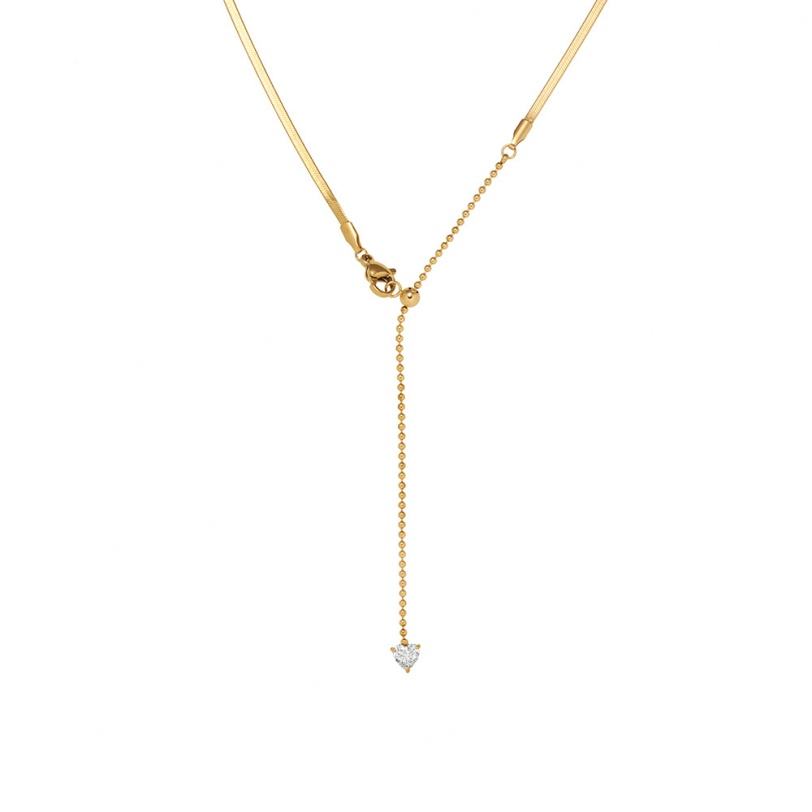 สร้อยคอรูปตัว Y แบบปรับได้ ลายกระดูกงู ทอง 18K วัสดุสแตนเลส สไตล์แฟชั่น