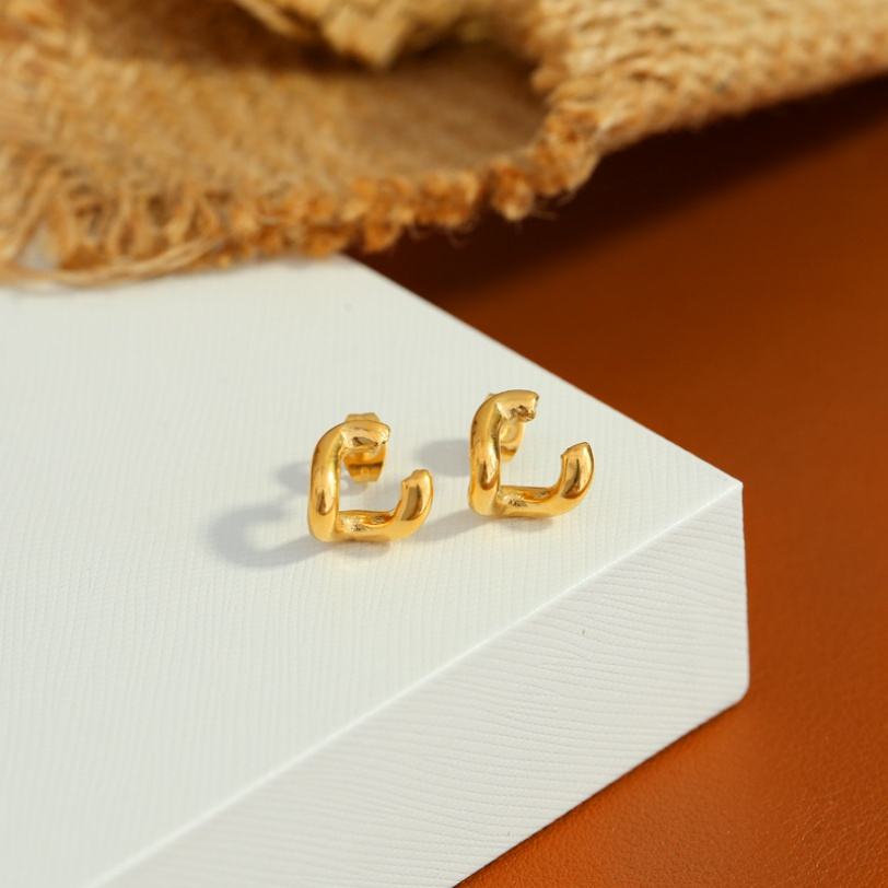 ต่างหูวงแหวนคู่เคลือบทอง 18K สแตนเลสสตีล ป้องกันการแพ้ ไม่หมอง ดีไซน์ย้อนยุค ลายโลหะ เหมาะสำหรับงานแต่งงานและเป็นของขวัญ