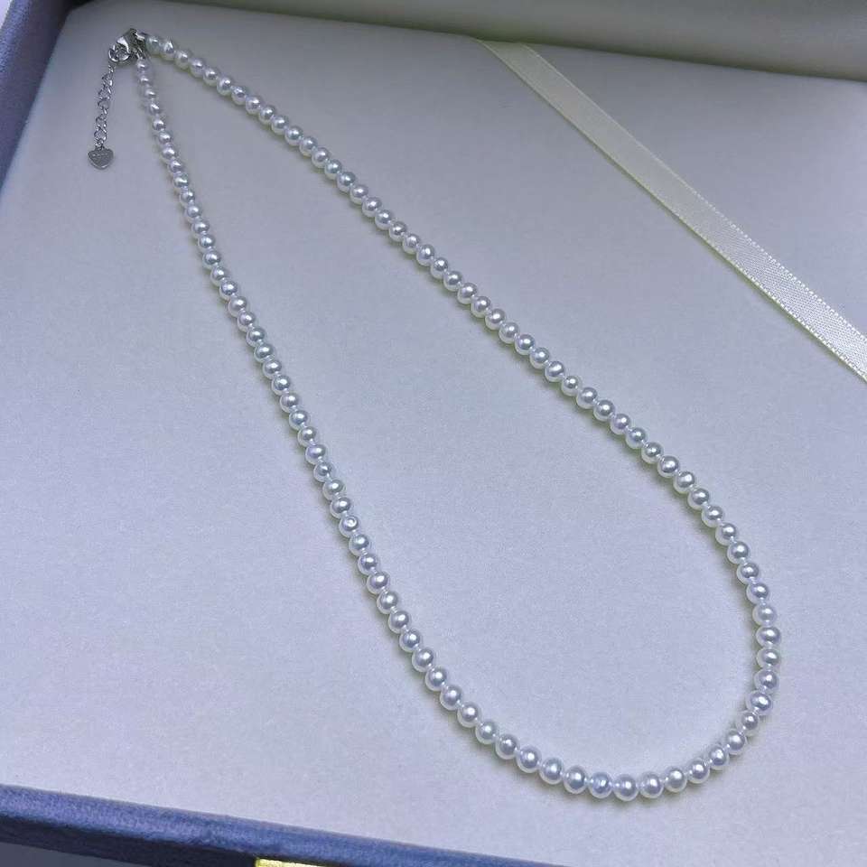 สร้อยคอไข่มุกน้ำจืดออโรร่าไร้ตำหนิ ขนาด 4-5 มม. พร้อมสายทอง 18K หรูหรา พร้อมใบรับรองระดับห้าดาว