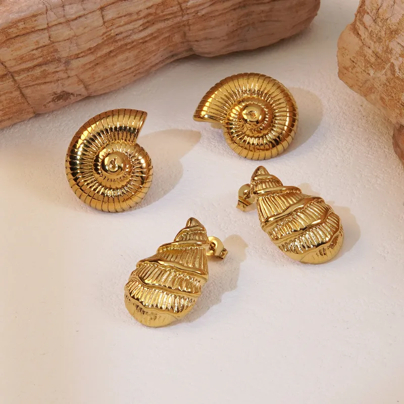 18K Gold and 304 Stainless Steel Simple Beach Style Conch Plating Stud Earrings 1 Pair of Fashionable Jewelry