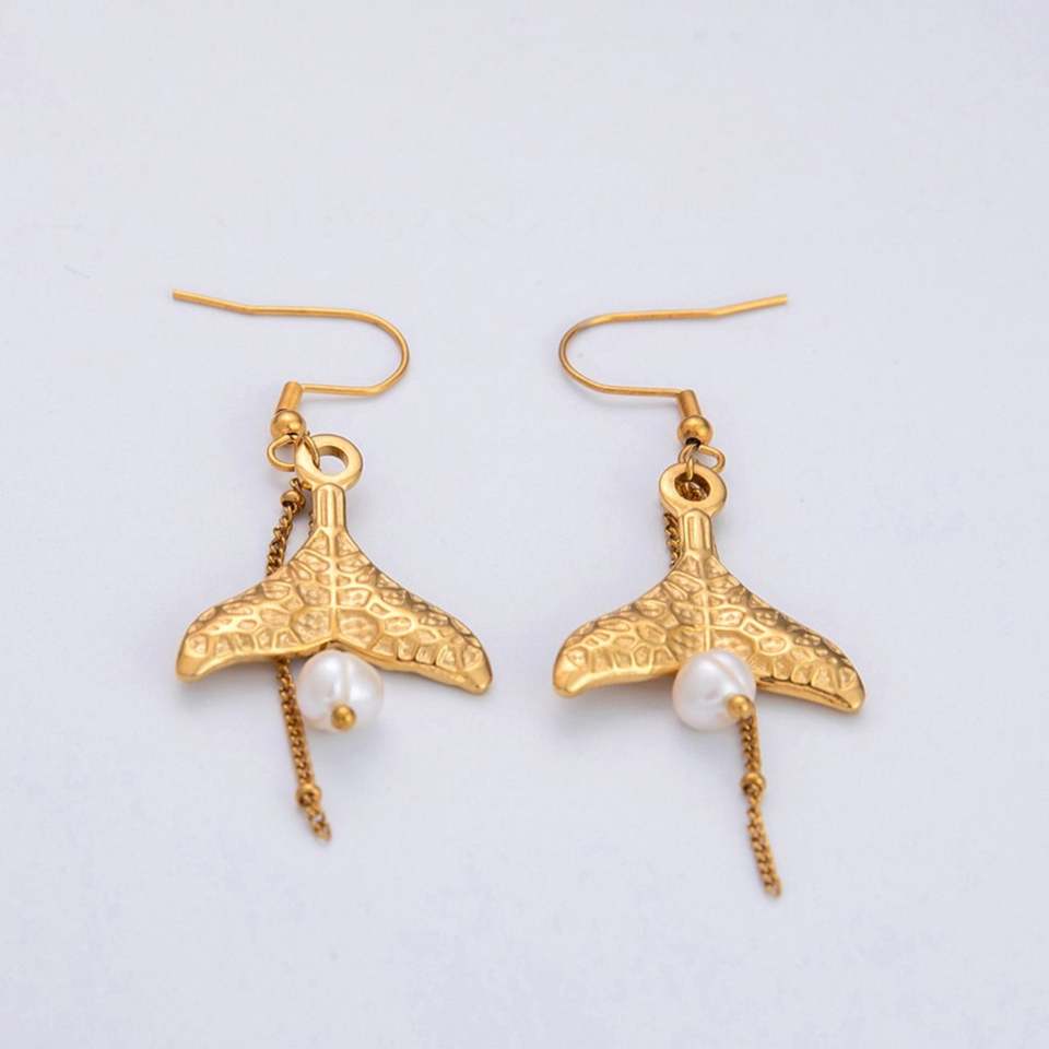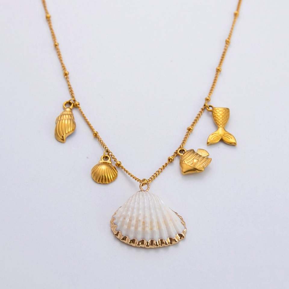 แหวนเปิดสแตนเลสชุบทอง 18K พร้อมต่างหูดีไซน์หรูหรา สร้อยคอรูปดาวทะเลและเปลือกหอย