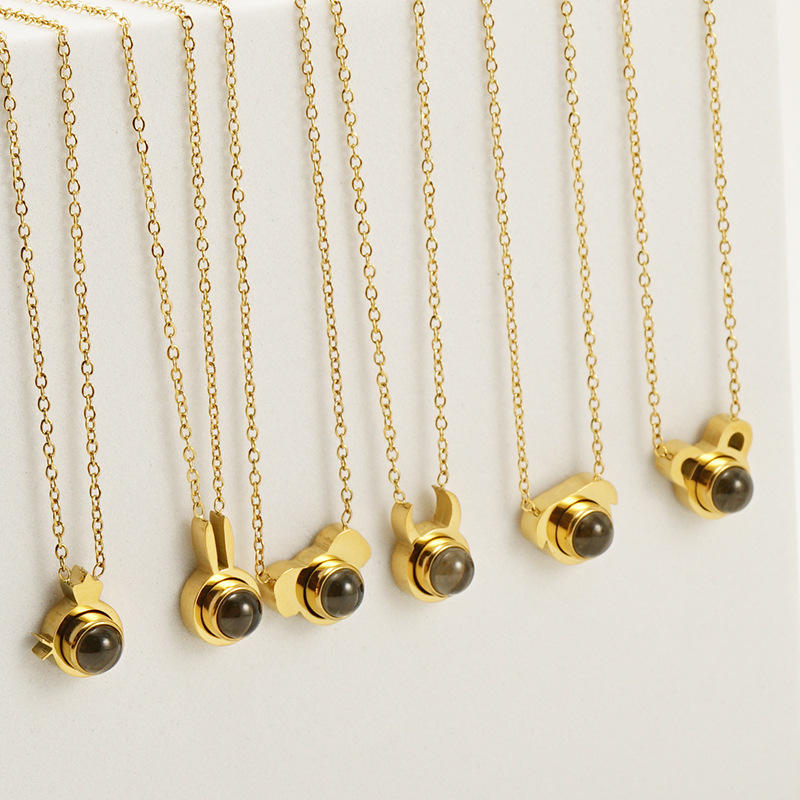 18K Plated Gold 100 Languages I Love You Projection Pendant Necklace