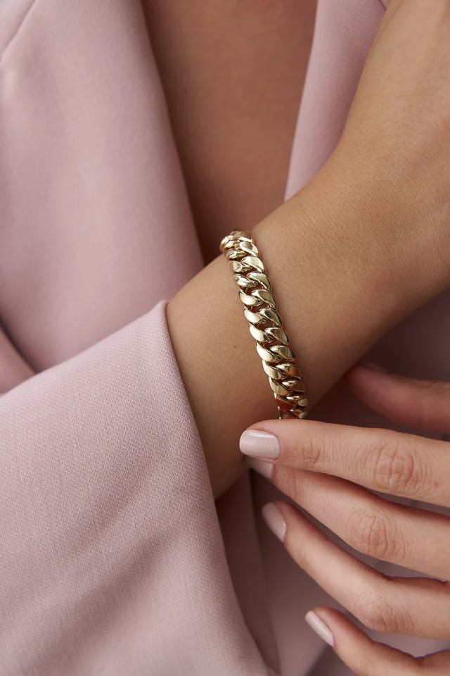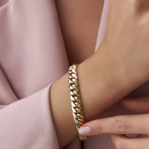 สร้อยข้อมือทองคำแท้18K ไมอามี่คิวบาสร้อยข้อมือแบบสายเชื่อมแบบคิวบาสร้อยข้อมือสีทองสำหรับเครื่องประดับแฟชั่นทุกเพศ