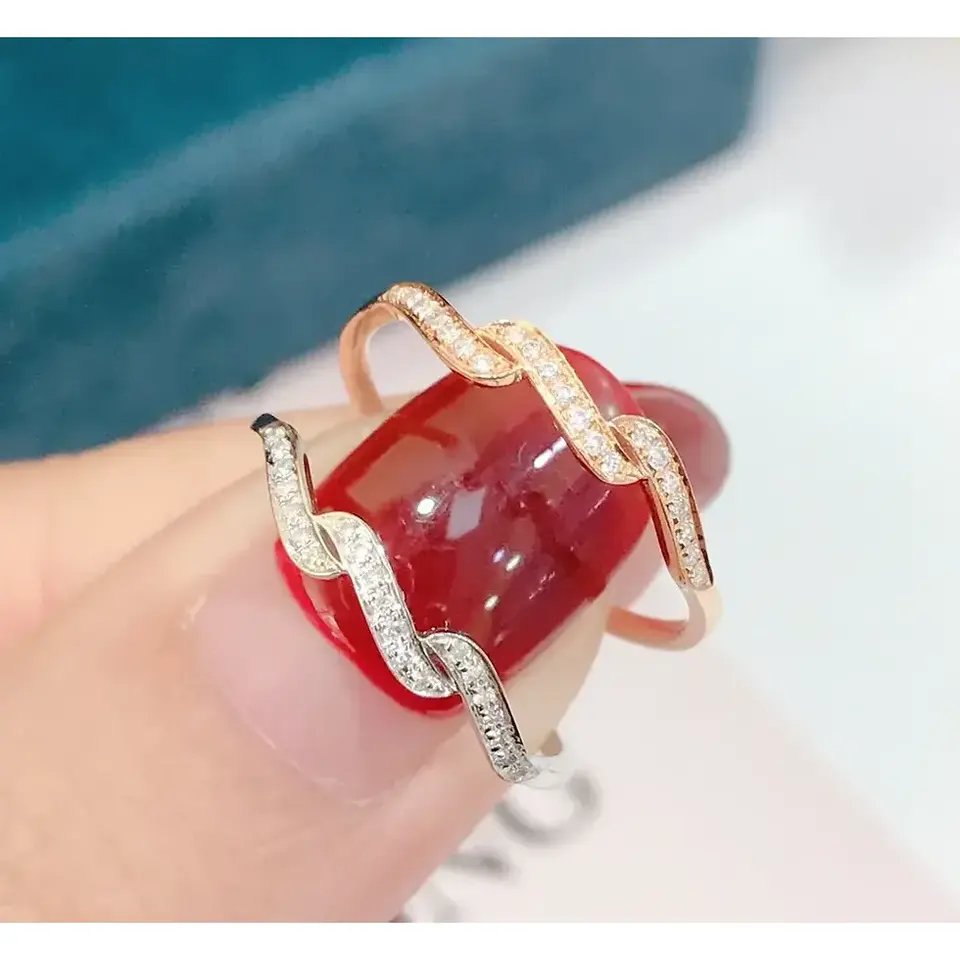 แหวนซ้อนได้คลื่นเพชรธรรมชาติสีทองแท้18K