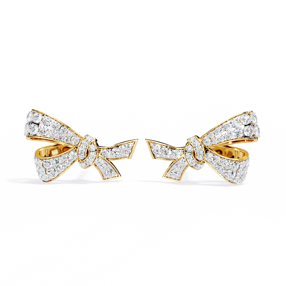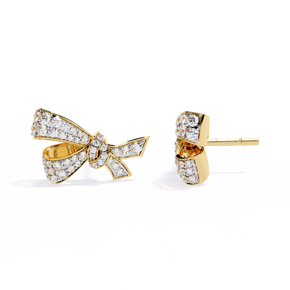 ต่างหูเพชรแท้ 14K ทองคำชมพู รูปโบว์ ดีไซน์ทันสมัย เหมาะเป็นของขวัญงานแต่งงาน สี E ทรงกลมเจียระไนแบบบริลเลียนท์ ได้รับการรับรองจาก IGI