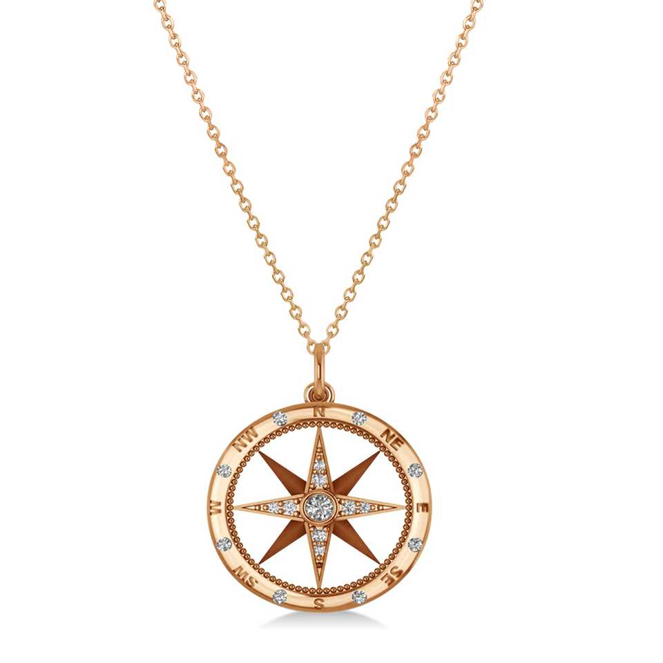 จี้สร้อยคอรูปเข็มทิศทองคำโรสโกลด์ 18K ประดับเพชร (0.19 กะรัต) ชุบโรเดียมทองคำขาว มุกน้ำจืด แซฟไฟร์ แพลตตินัม