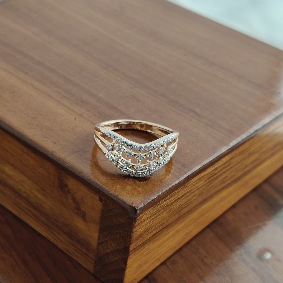 แหวนทองคำ 18K รูปทรงตัววีประดับเพชรแบบหลายแถว ดีไซน์หรูหราสำหรับผู้หญิง เหมาะสำหรับใส่ทุกวัน เป็นของขวัญ