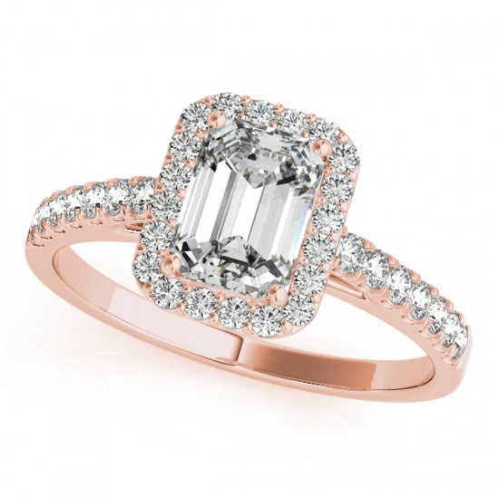 แหวนหมั้นเพชรทรงเอเมอรัลด์ 18K โรสโกลด์ 0.90 กะรัต