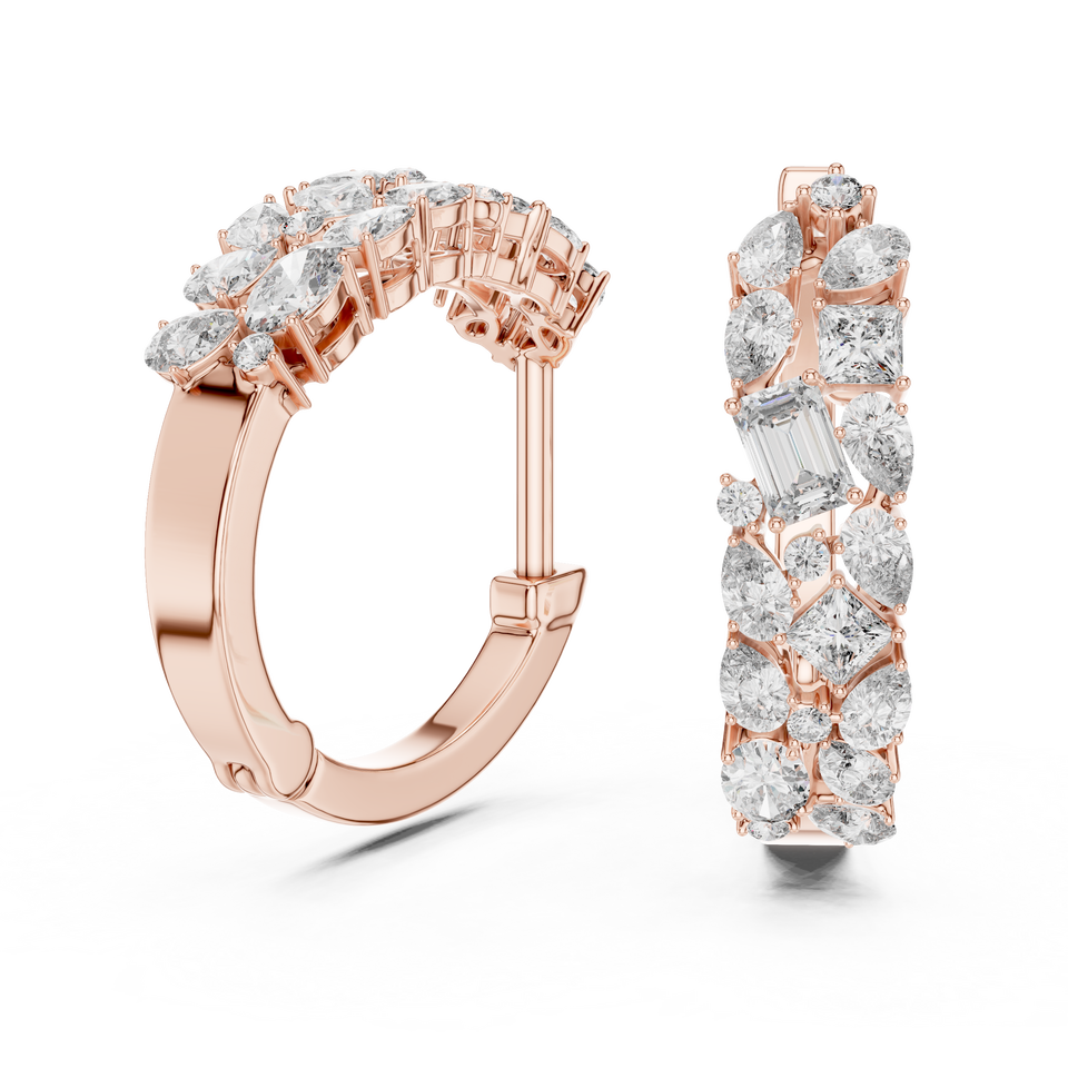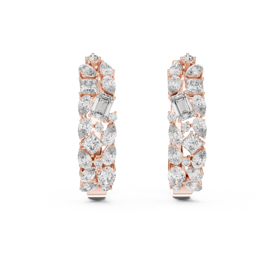 ต่างหูห่วงทรงแคสเคดหรูหราประดับเพชรแล็บโกรว์ 18K โรสโกลด์