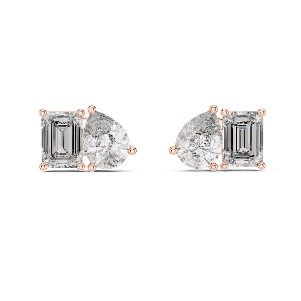 ต่างหูเพชรทรงเหลี่ยมมรกต 18K โรสโกลด์ เพชรเลี้ยงในห้องปฏิบัติการ ดีไซน์หรูหราแบบคู่