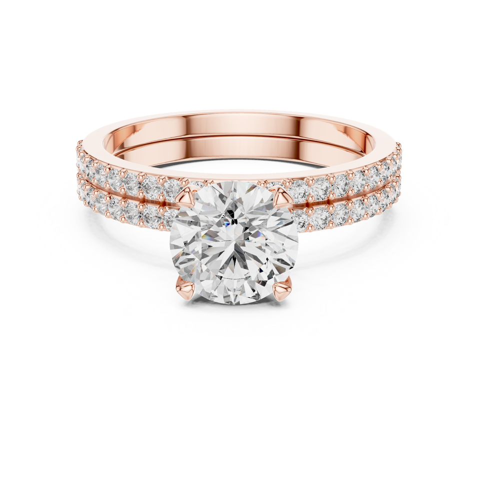 แหวนหมั้นเพชรเม็ดเดี่ยวทรงกลมสีโรสโกลด์18K พร้อมการตั้งค่าแบบง่าม