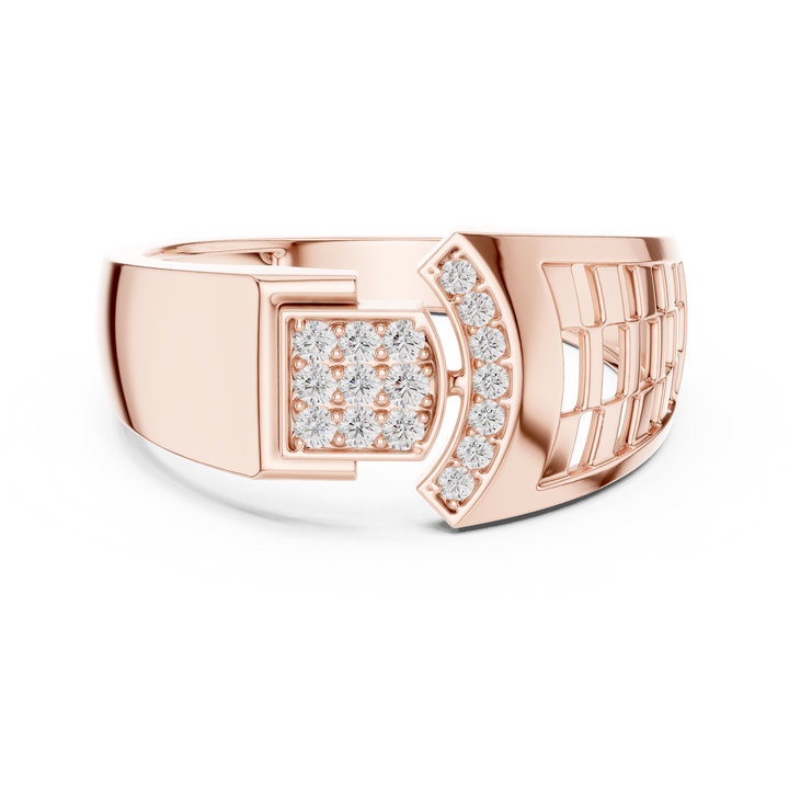 แหวนทองคำ 18K โรสโกลด์ ประดับเพชรทรงกลมเจียระไนแบบบริลเลียนท์ ดีไซน์รูปโล่ห์แบบอิมพีเรียล