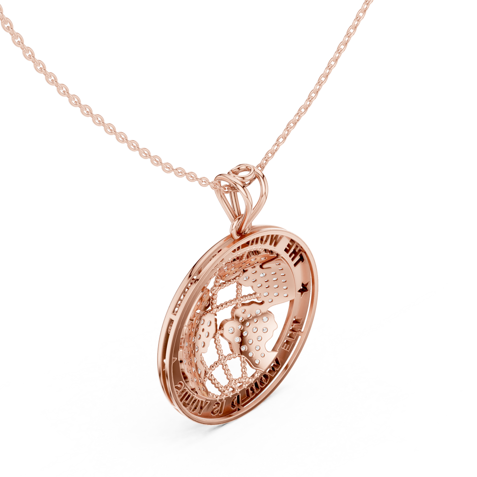 สร้อยคอจี้รูปแผนที่โลกประดับเพชรแล็บโกรว์ 18K โรสโกลด์ ดีไซน์ "โลกเป็นของคุณ" หรูหรา